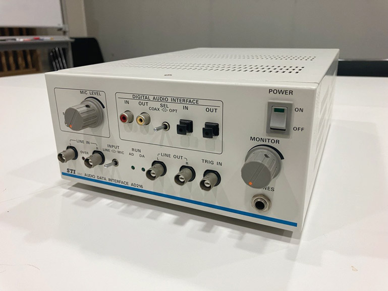 開発当時には苦労して生み出した技術や製品も、年月が経てば当たり前となり、さまざまな商品や有用な業務ツールとして定着していきます。当社も、オーディオインターフェイスを使った音響計測システムを開発し、多くのお客様にご利用いただいています。これらのシステムが生まれるきっかけになったのは、現在は会社に1台だけ残っているAD216に端を発していたことを知る当社スタッフも徐々に少なくなってきました。